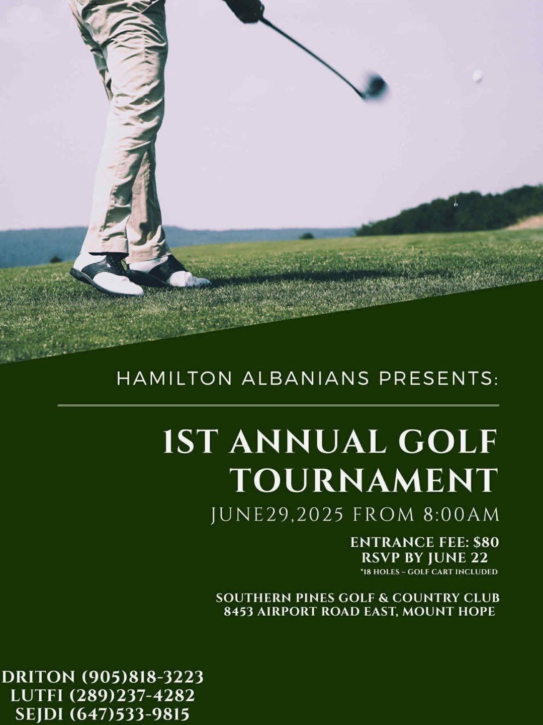 EventeShoqata Shqiptare e Hamiltonit njofton se po organizon Turneun e Parë të Golfit…. Last updated: June 15, 2025 3:37 am Albanian News Share 0 Min Read SHARE Shoqata Shqiptare e Hamiltonit njofton se po organizon Turneun e Parë të Golfit.Source Share This Article Facebook Copy Link Print Leave a CommentLeave a Reply Cancel replyYour email address will not be published. Required fields are marked *Comment *Name * Email * Website Save my name, email, and website in this browser for the next time I comment. SearchSearchRecent PostsNjë mbrëmje frymëzuese me shkrimtarin Stefan Çapaliku në Bibliotekën “Ernest Koliqi” në PrishtinëFeminizmi lufton edhe për të drejtat e burraveFilmi “Luli dhe Goni i Lemës” shfaqet për publikun shqiptar në KanadaPresidentja Osmani ka caktuar 12 tetorin e vitit 2025, datë të mbajtjes së zgje…Pamje nga falja e Kurban Bajramit nga Xhamia Shqiptare e Torontos.